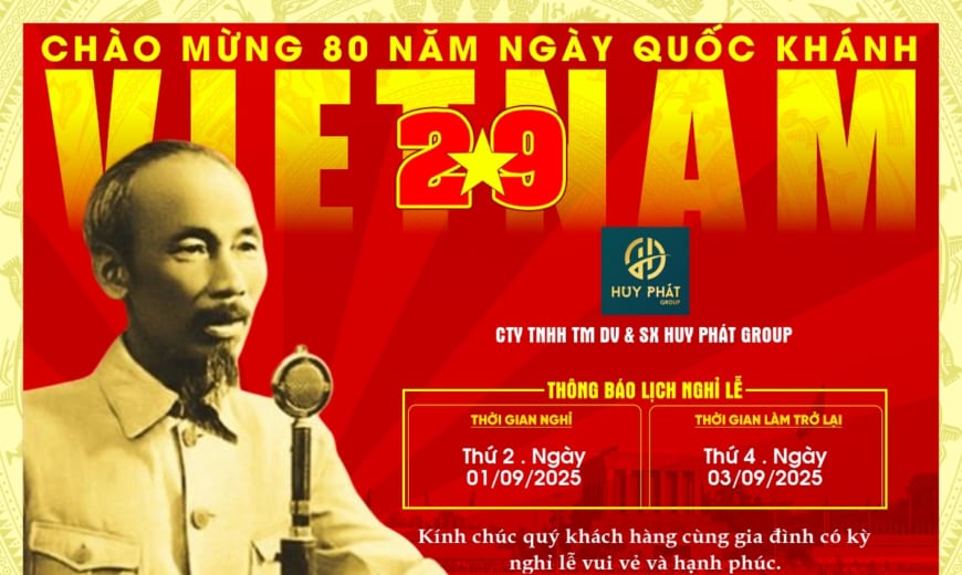 Thông báo lịch nghĩ lễ quốc khánh 2/9 Cty làm hết ngày thứ 7 30/8/2025 thời gian làm việc trở lại thứ tư 3/9/2025 Kính chúc quý khách hàng...